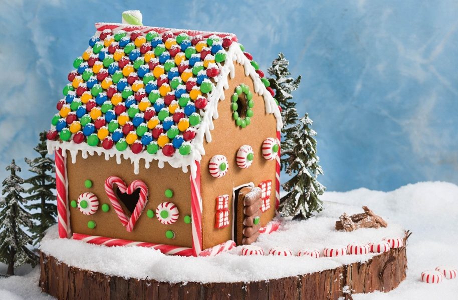 - Marshmallows: Schaffen Sie eine verschneite Landschaft, indem Sie Marshmallows strategisch rund um das Haus platzieren.
