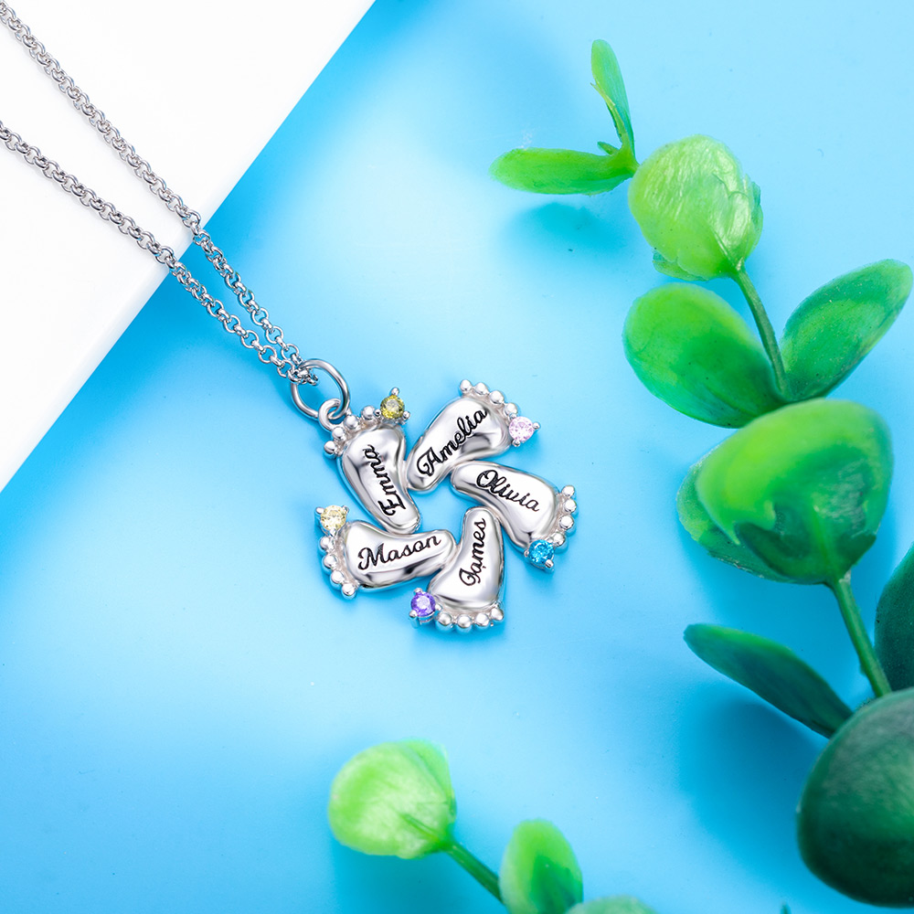 Passen Sie es nach Ihren Wünschen an - diese Halskette kann mit bis zu 6 Babyfüßen mit einem Namen und einem Geburtsstein versehen werden, um jedes Kind darzustellen, und jeder Edelstein kann auch verwendet werden, um den Geburtstag jedes Kindes darzustellen Diese Halskette ist eine tolle Wahl als Muttertagsgeschenk oder sogar als Geburtstagsgeschenk!