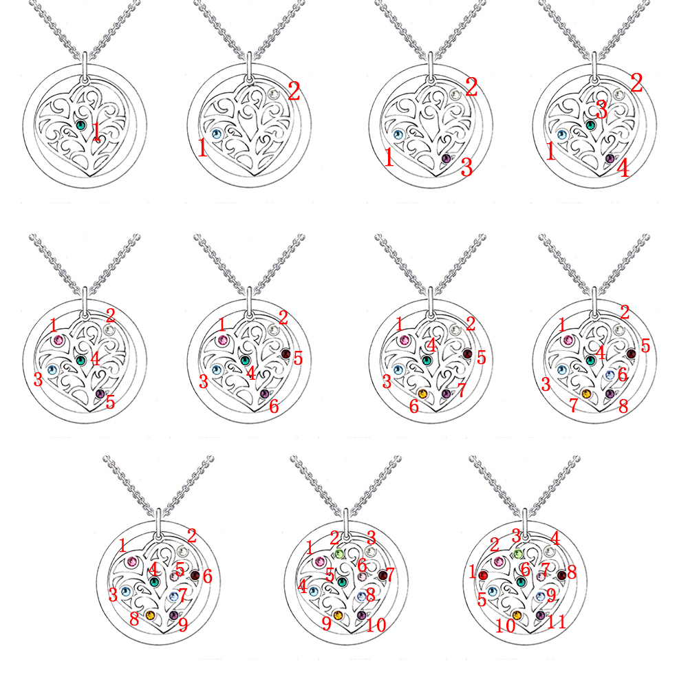 Personalisierte Stammbaum Halskette mit Namen und Geburtsstein. Es verfügt über einen einzigartigen baumförmigen Anhänger, darauf können Sie Ihren eigenen Stammbaum und Kristall-Geburtsstein-Anhängern aufbauen lassen. Was für eine schöne Weise ist, um Ihre Liebe zu Ihrer geliebten Familie auszudrücken!