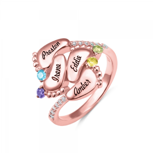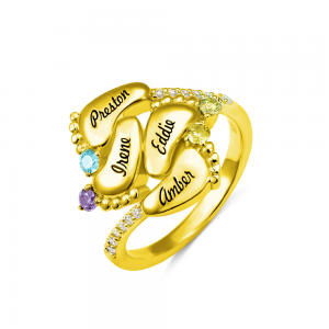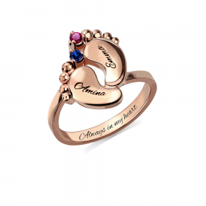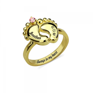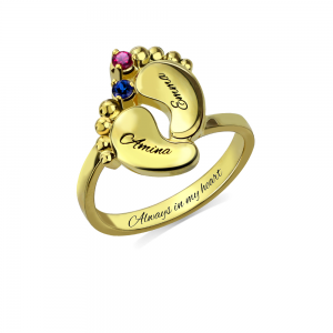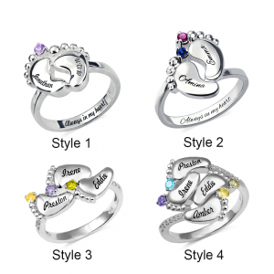 Zeigen Sie den Namen Ihres Babys mit diesem einzigartigen Namensring. Personalisierte Babyfußringe, die perfekten silbernen Ringe, um die Meilensteine der Familie in Ihrem Leben zu feiern. Wir tragen Namen und Geburtsstein Ihrer Wahl sorgfältig auf beiden Seiten der Babyfüße auf, um diese schönen, sehr persönlichen Festringe zu kreieren. Ehre jede neue Mutter deines Lebens mit diesem bedeutungsvollen Ring!
